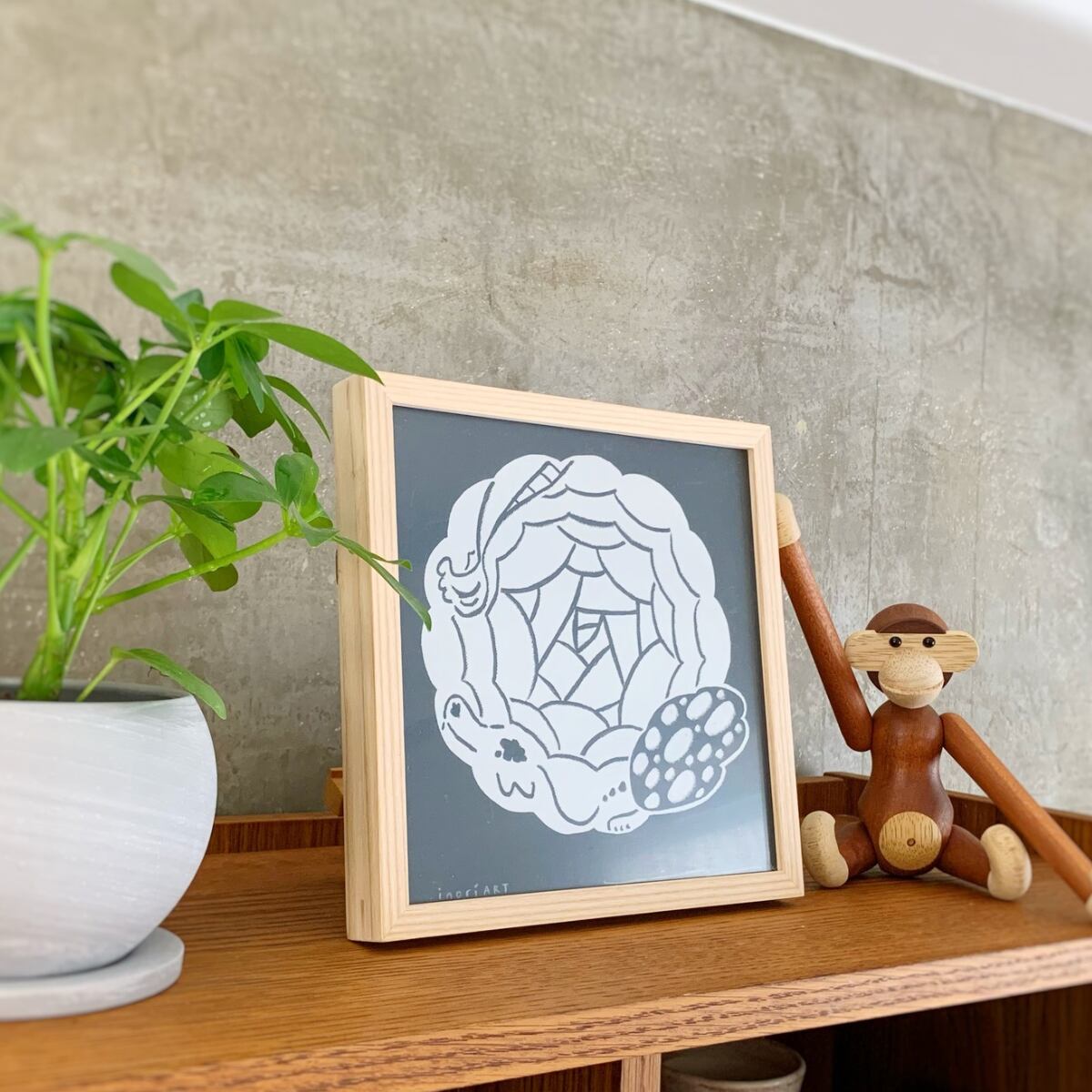 ※ナチュラルな木地の額縁に額装して